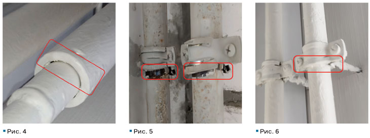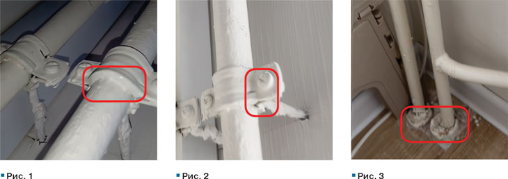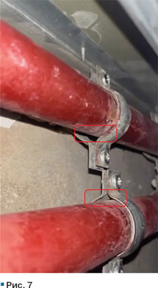Рис. 2 демонстрирует другую причину – хомуты направляющих опор затянуты слишком туго, что исключает необходимый зазор для перемещения между хомутами и трубопроводом.