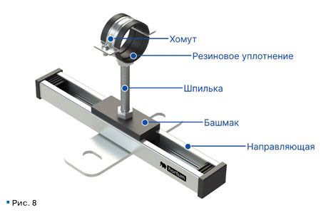 Для решения данной проблемы мы разработали скользящие направляющие опоры Hortum (рис. 8).