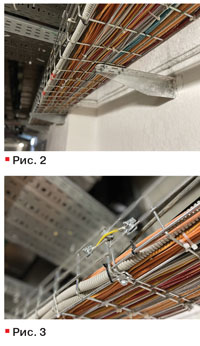 Кабели прокладываются с помощью проволочных лотков (рис. 2), в них кабели фиксируются пластиковыми стяжками (куда же без них во время монтажа!). Магистраль удерживается кронштейнами.
