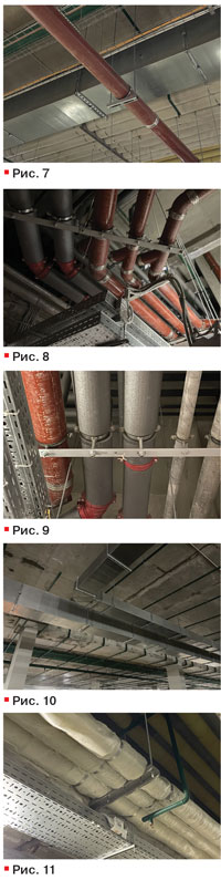 Чугунные трубы большого диаметра на данном объекте проложены с использованием хомутов SML высокой нагрузки (рис. 8). Это мощные хомуты, выдерживающие нагрузку более двух тонн. Производятся в Турции. Кроме того, часто в системе крепления применяются металлические уголки (рис. 9).