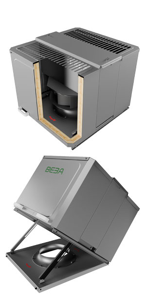 - корпус вентилятора имеет наклоняющуюся конструкцию с фиксирующим устройством, позволяющим производить техническое обслуживание вентилятора без демонтажа;