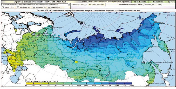 Keywords: construction climatology, SP 131.13330.2025, cold period of the year, warm period of the year, air temperature of the coldest day, air temperature of the coldest five-day period, average monthly relative humidity