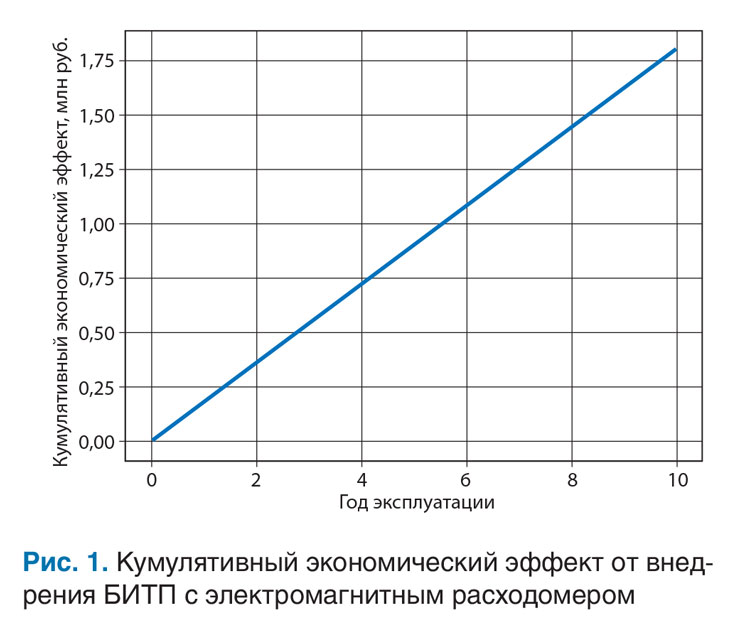 Таким образом, суммарный годовой экономический эффект внедрения БИТП с электромагнитными расходомерами в составе узла учета тепловой энергии в рассмотренном примере составляет порядка 180 тыс. руб.