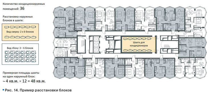 К примеру, если на один блок будет приходиться всего 1,5 м2 площади шахты, то высока вероятность, что кондиционеры работать не будут.