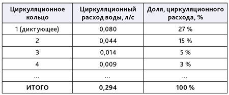 - рассчитать распределение общего циркуляционного расхода по циркуляционным кольцам;