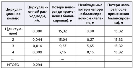 - рассчитать четыре параметра разбалансировки циркуляционных колец – циркуляционного расхода, температуры, потерь напора, пропускной способности клапанов;