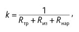 Коэффициент теплопередачи k, Вт/(м·°C), вычисляется по формуле