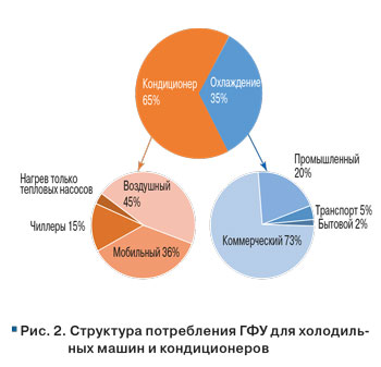 Для понимания сложности ситуации необходимо ознакомиться с текущей структурой потребления ГФУ (рис. 1, 2).