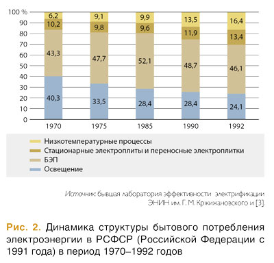 Можно видеть (рис. 2), что структура на каждом этапе электрификации быта в России менялась: