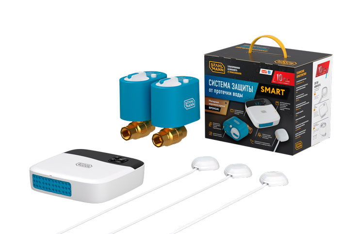 Торговая марка Stahlmann™ включает всё необходимое для безопасности и комфорта в помещениях. Так, системы защиты от протечек воды Stahlmann™ идеально подходят как для бытового, так и для промышленного применения. Базовая модель Base предлагает классическое, проверенное временем решение с усиленным бронзовым краном, устойчивым к коррозии, и модулем, контролирующим обрыв датчиков. Модель Smart представляет собой готовое к использованию «из коробки» умное устройство со встроенным Wi-Fi, блоком бесперебойного питания и возможностью управления через смартфон и голосового помощника. Она позволяет независимо контролировать две зоны, автоматически проворачивает краны для предотвращения закисания и может работать с большим количеством проводных и беспроводных датчиков.