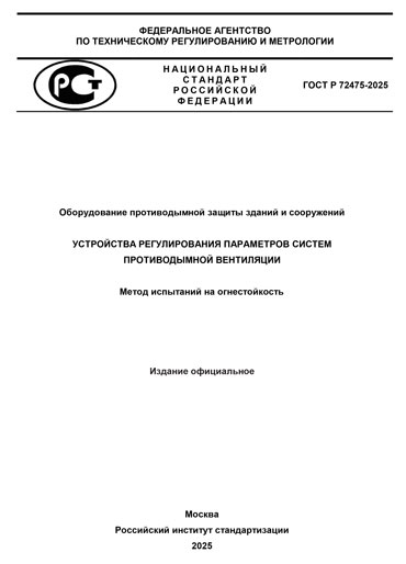 Утвержден ГОСТ Р 72475-2025 "Оборудование противодымной защиты зданий и сооружений. Устройства регулирования параметров систем противодымной вентиляции. Метод испытаний на огнестойкость".