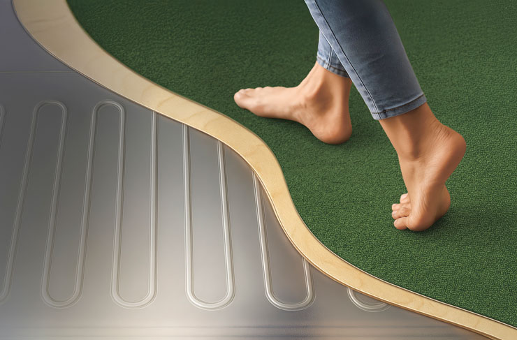В отличие от классических кабельных систем, новый фольгированный мат не требует заливки стяжкой. Он просто раскатывается на подготовленное основание, подключается к терморегулятору — и система готова к укладке финишного покрытия.