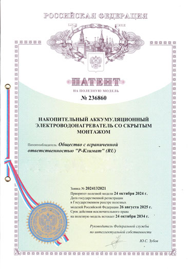 Группа компаний Ижевского завода тепловой техники (ИЗТТ+), входящая в холдинг «Русклимат», совместно с коммерческим департаментом дивизиона водонагревательной техники холдинга презентовала уникальную разработку — электроводонагреватель со скрытым монтажом. Патент на изобретение № 236860 отмечен в Государственном реестре полезных моделей Российской Федерации. Инновация по праву может считаться прорывом в сфере бытовых и профессиональных систем горячего водоснабжения.
