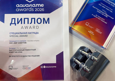 В рамках международной премии AQUAFLAME AWARDS 2026, посвящённой инновациям в водоснабжении, отоплении и сантехнике, наш продукт - быстросъёмный ремонтный хомут МХ Краб удостоен специальной награды «За простоту и удобство решения».